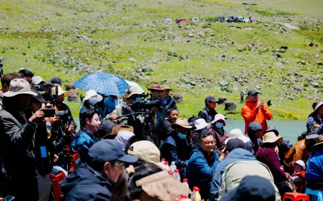 天高地闊,白云祥和,雪山巍然;清風(fēng)徐徐,青草依依,湖水湛藍(lán)。薩普雪山融水匯聚成一條清澈的河,從眼前激流直下。7月15日上午,一場別具特色的文化旅游賽事活動在這里拉開序幕。一場慷慨激昂、內(nèi)容豐富的主題推介演講,一首首悠揚(yáng)高亢、直擊心靈的民族歌曲,一幕幕輕盈靈動、鏗鏘有力的特色舞姿,引得現(xiàn)場數(shù)百名觀眾一陣陣掌聲雷動和直播間數(shù)十萬用戶點贊、好評不斷,成功向區(qū)內(nèi)外推介了比如縣得天獨厚的旅游資源和特產(chǎn)資源,為旅游事業(yè)和經(jīng)濟(jì)社會高質(zhì)量夯實了宣傳工作基礎(chǔ)。