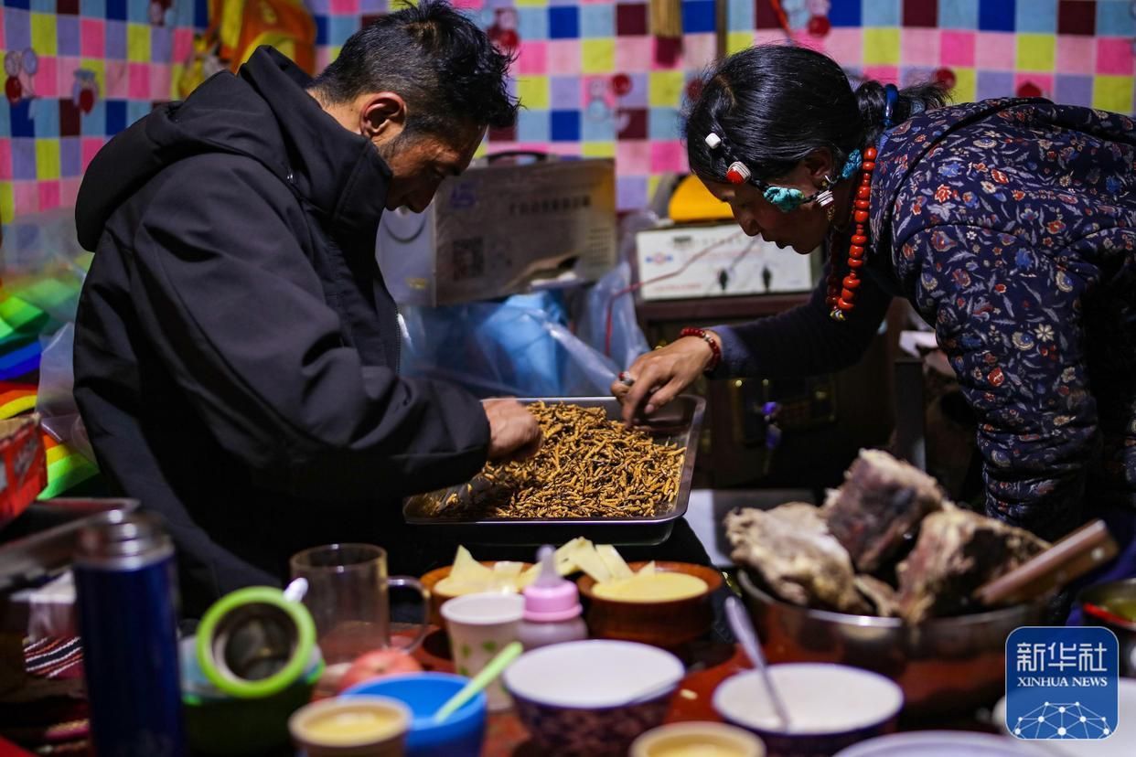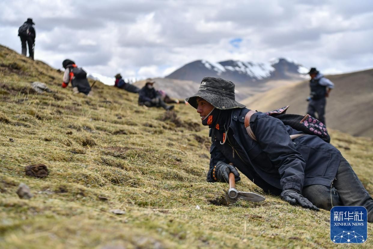 5月25日,牧民在采集蟲草。新華社記者 晉美多吉 攝