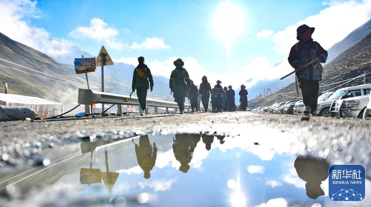 清晨,西藏那曲市比如縣良曲鄉(xiāng)然木塘村蟲草采集點(diǎn)的人們統(tǒng)一前往山上采集蟲草(5月26日攝)。新華社記者 姜帆 攝