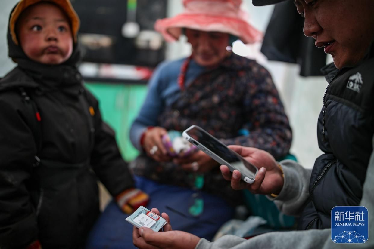 在西藏那曲市比如縣良曲鄉(xiāng)然木塘村蟲草采集點(diǎn),工作人員在幫助牧民其美嘎德進(jìn)行蟲草采集登記,以便進(jìn)行總量統(tǒng)計(jì)(5月25日攝)。新華社記者 姜帆 攝